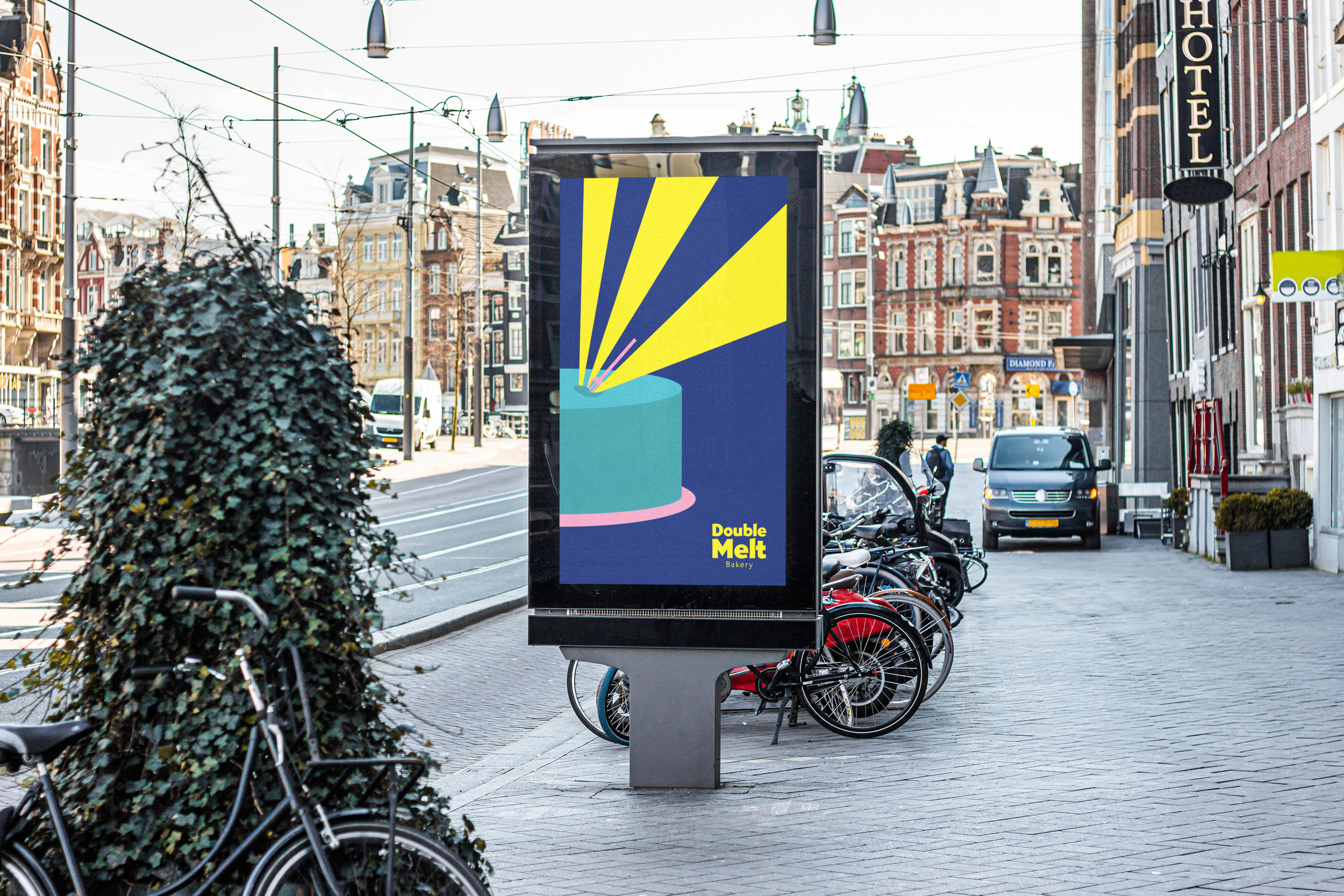 My approach to visual branding and packaging for Double Melt Bakery is a well-structured creative process. To infuse a sense of joy, I've incorporated shades of blue and shiny yellow, creating a playful and inviting atmosphere. The packaging comes to life through meticulous illustration, where sharp lines add a crisp and delectable dimension to our sweet treats. This harmonious blend of colors and sharp designs ensures that every bite is as delightful as the packaging itself.